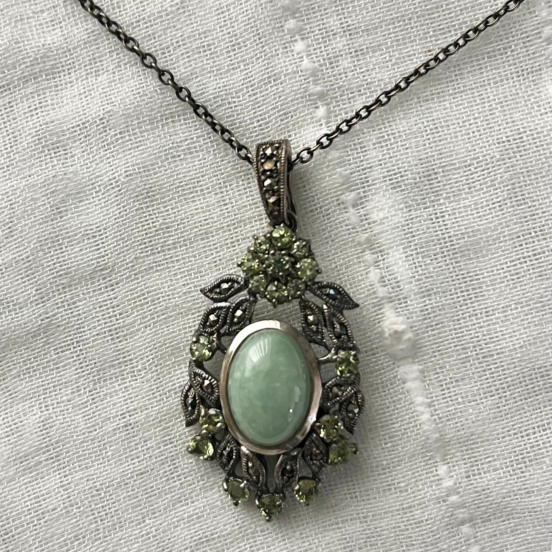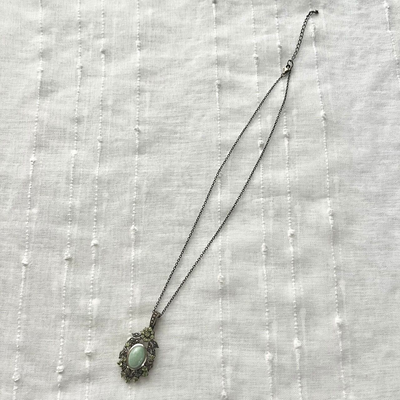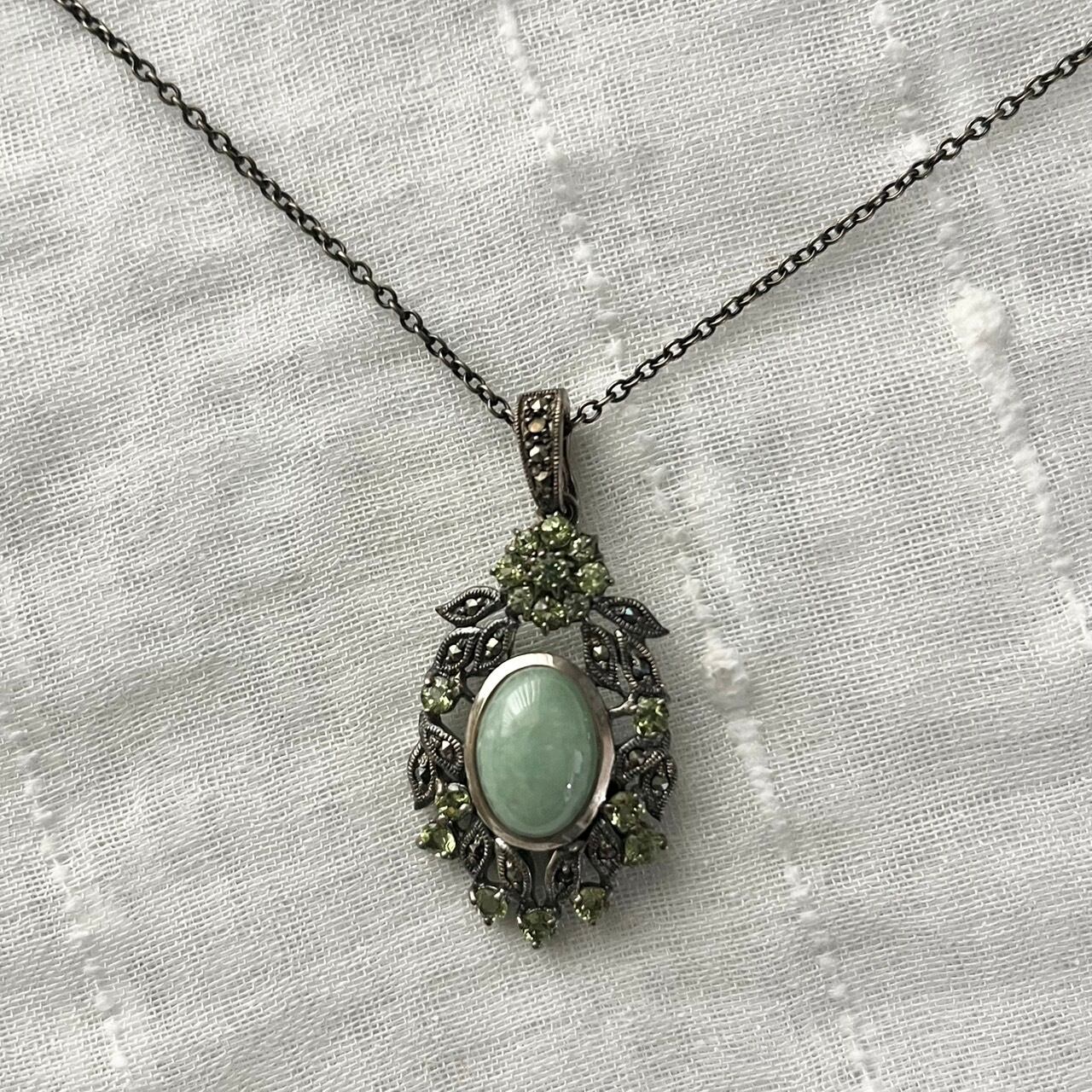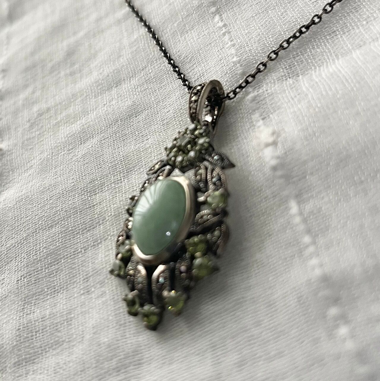 jade color stone and silver chain necklace KKVIRH40