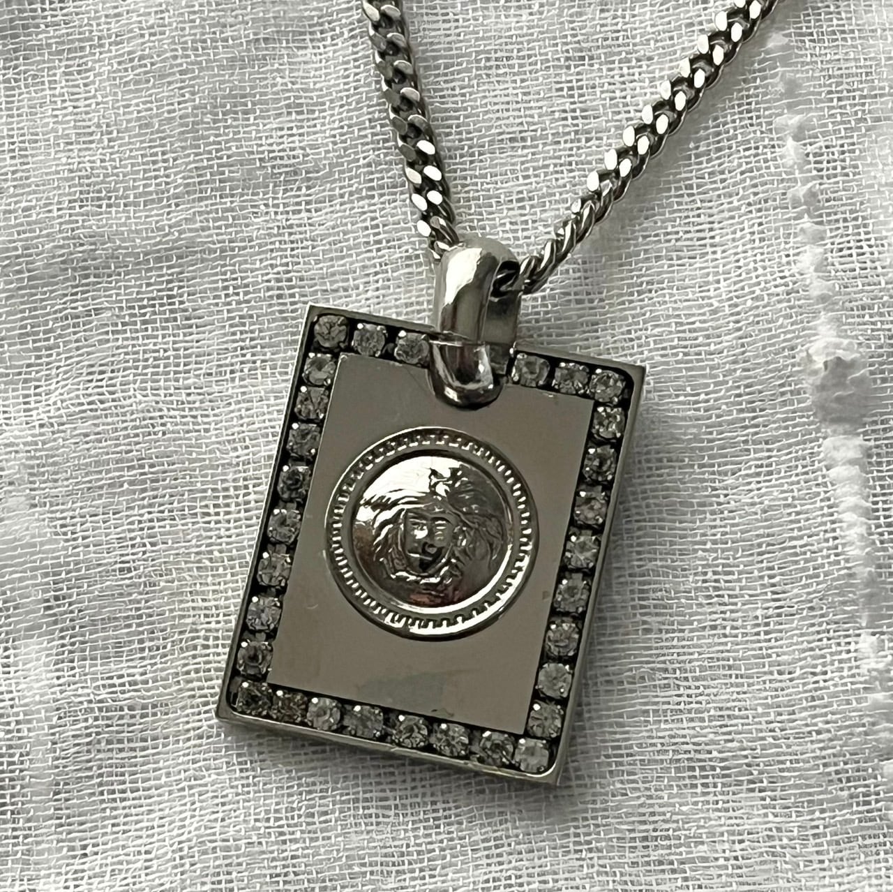 silver chain necklace with square plate KKVIRH48