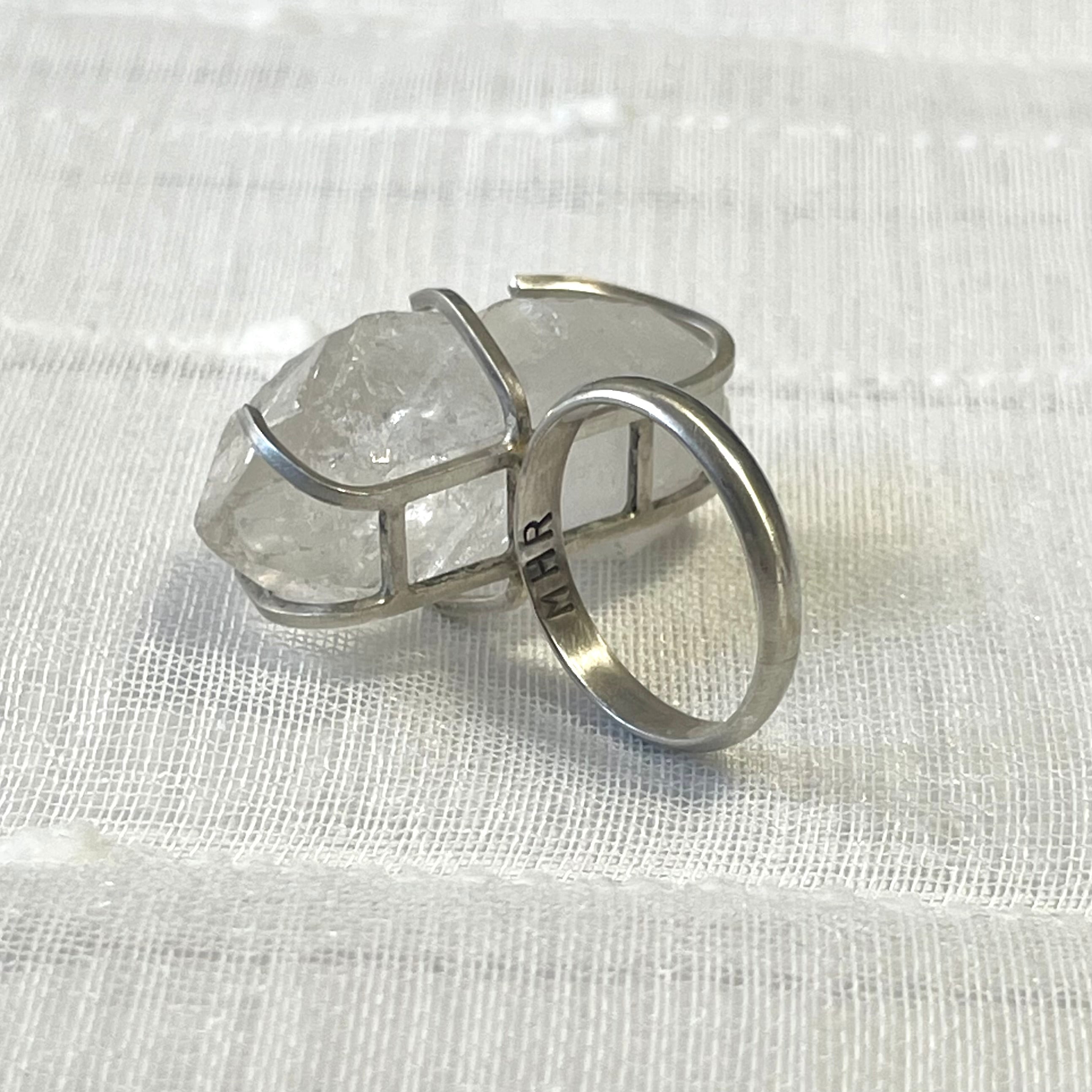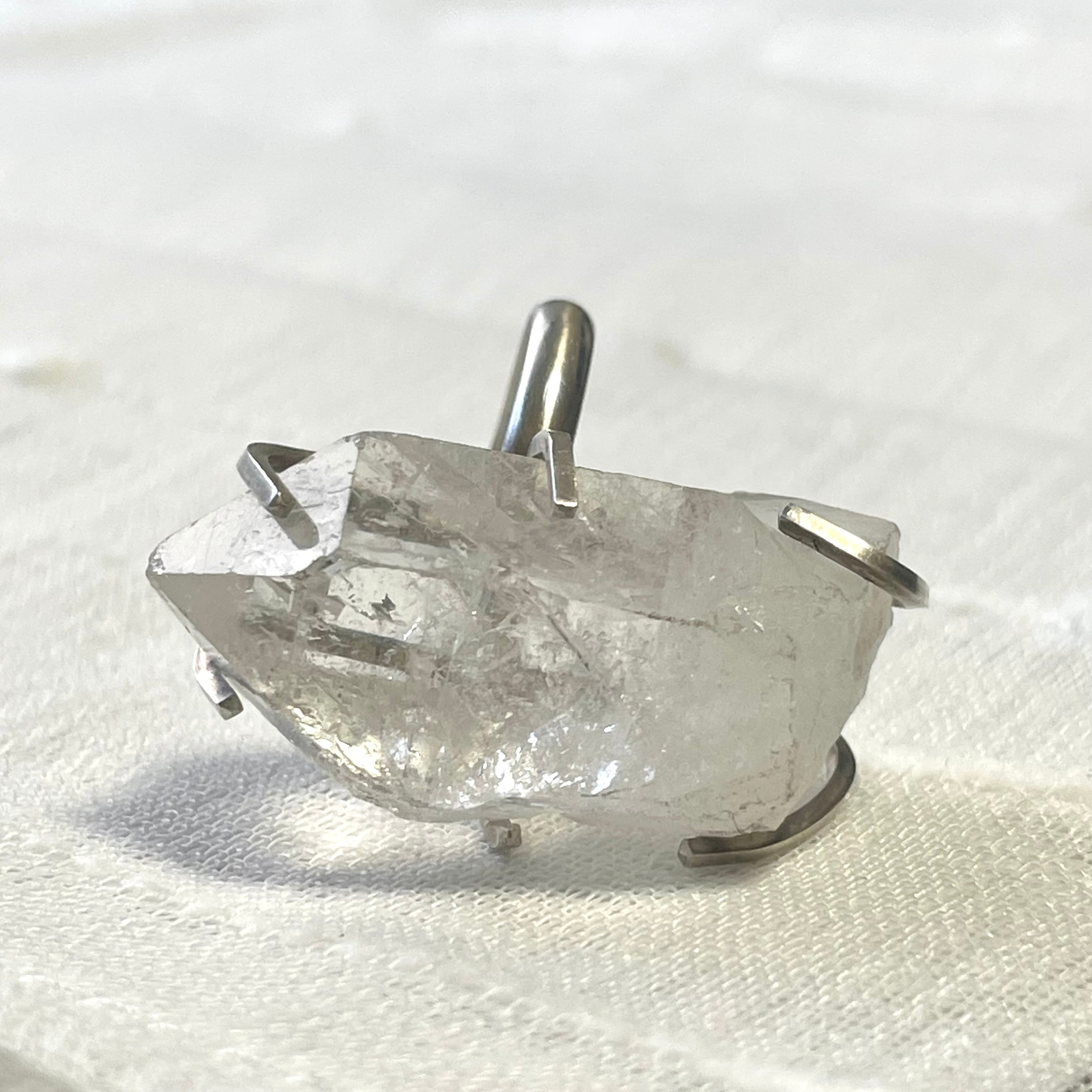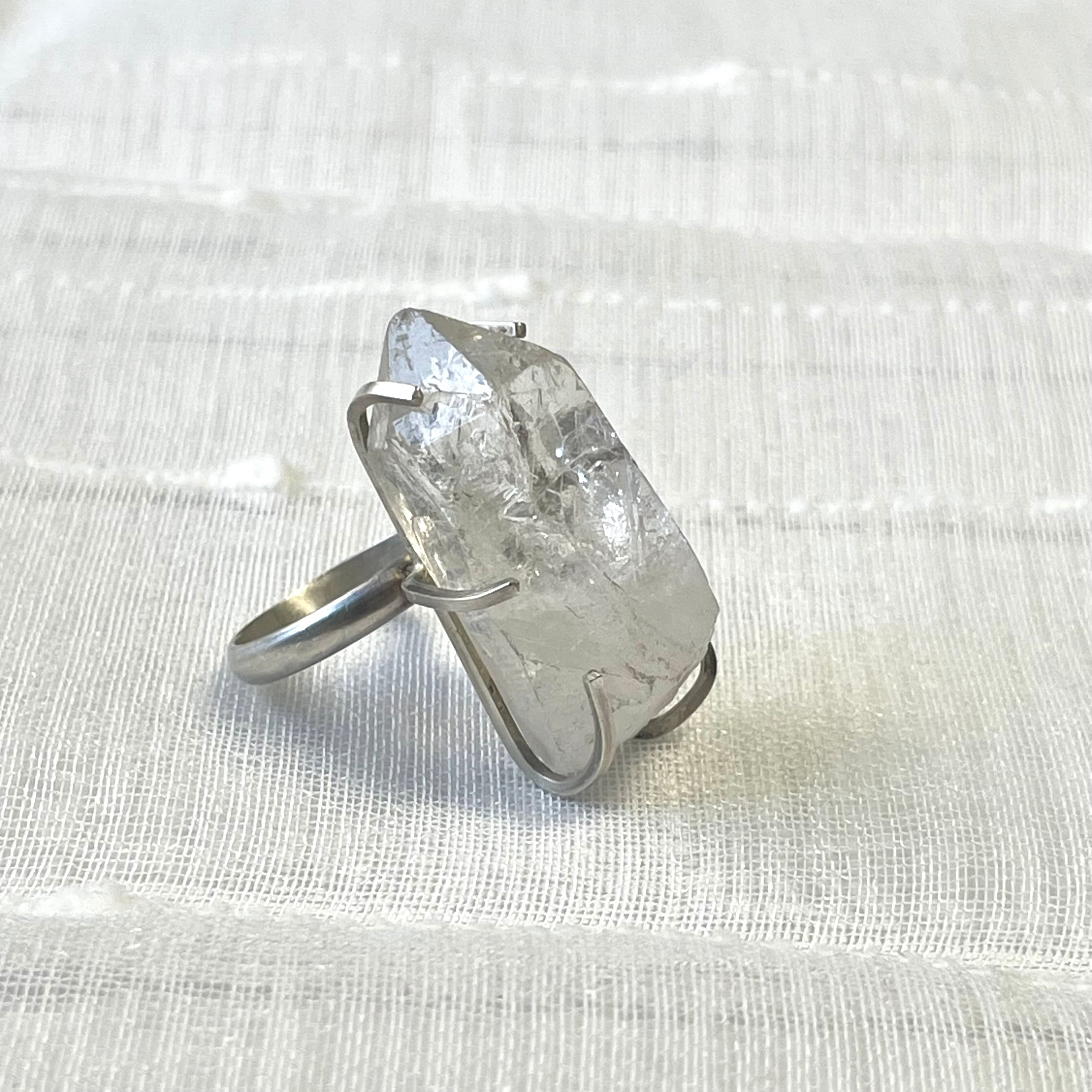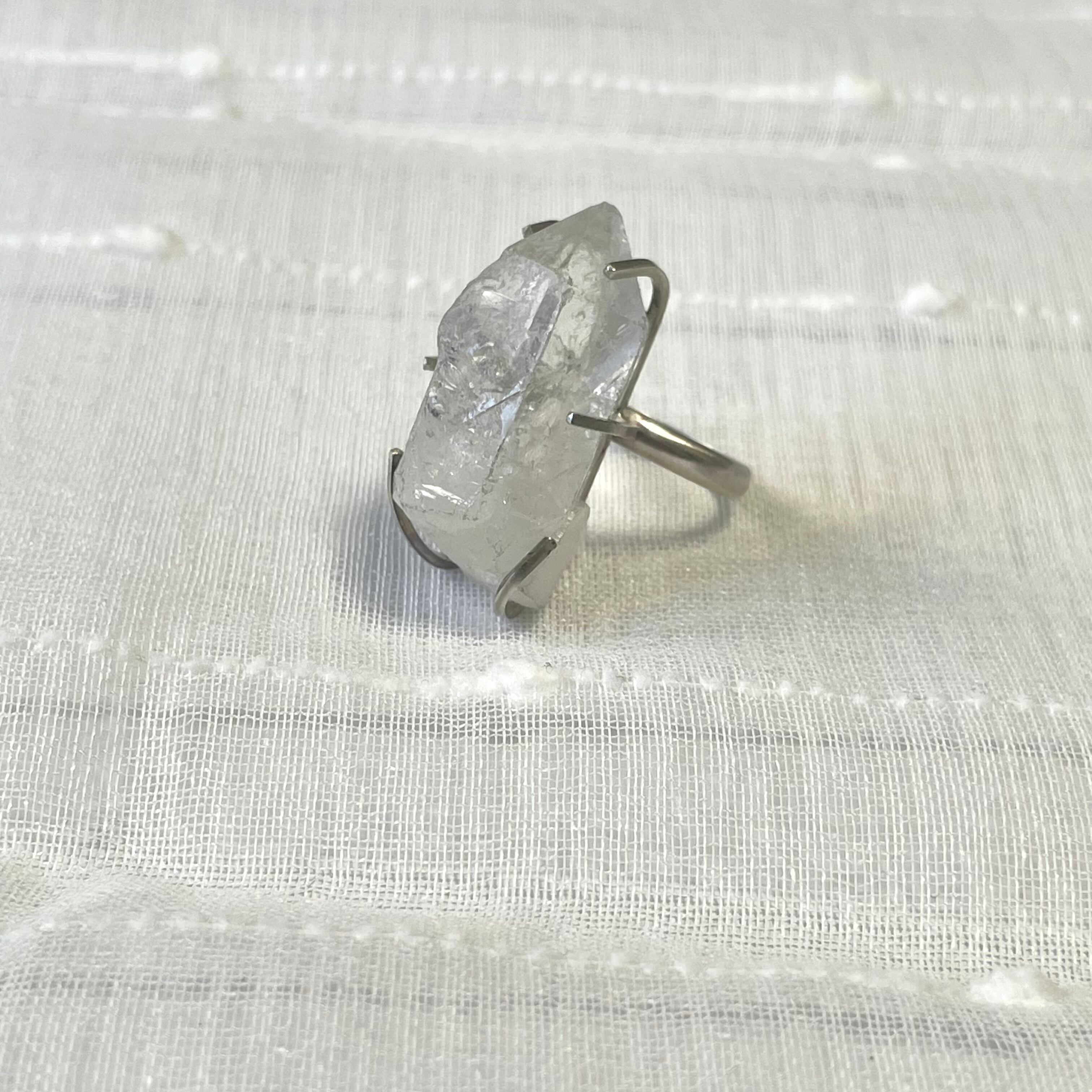 インパクトのある、クリアな石がセットされたリングです。